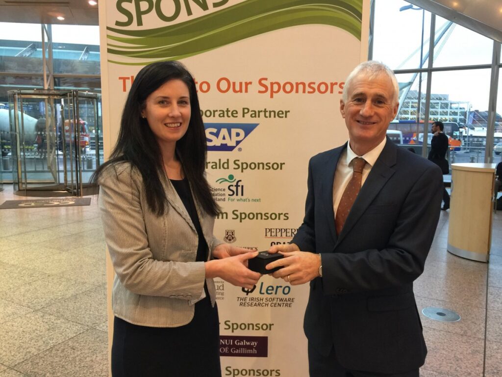 Professor Fitzgerald is pictured receiving the award from Emer Relihan, Convention Centre Dublin.