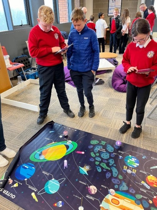 Students from Abbeydorney NS Kerry building, programing and playing with robots.