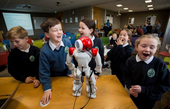 Gaelscoil Chaladh An Treoigh pupils enjoyed hanging out with NAO robot at our Science Week workshops. This image was featured on the Irish Times Images of the Day https://t.co/bnsloxHegH